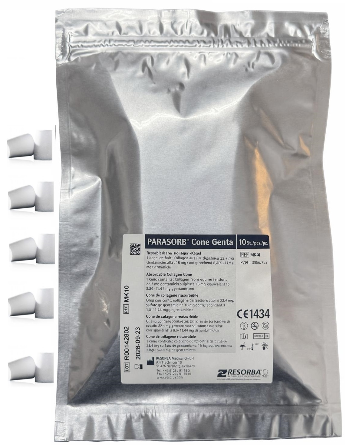 - Material: Colagen de origine equină combinat cu gentamicină.